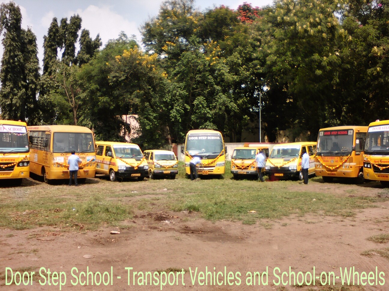 Door Step School runs various programmes for education of underprivileged children in and around Pune city. These include Educational Activity Centers run at construction sites and mobile classrooms used in temporary slums. All the children covered under Door Step School programmes are encouraged and helped to attend nearby government schools for formal education. Apart from creating awareness about education among parents and enrolling children in schools, Door Step School also provides school transport facility wherever possible. At present, five vehicles (vans and bus) are used for ferrying children to and from schools across Pune. Four School-on-Wheels buses reach out to around 400 children every day, offering education at their doorstep. Along with the teachers and escorts, our drivers (fondly called Kaka) play an important role in both school transport and mobile classroom programmes.