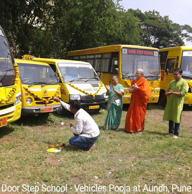 We express our gratitude towards our vehicles and entire transport team (driver Kaka’s) on the occasion of Dasara (Vijaya Dashami) Pooja. We are happy and proud to see everyone in the team equally concerned about and aligned towards the organizational goal of ‘Education for All’.