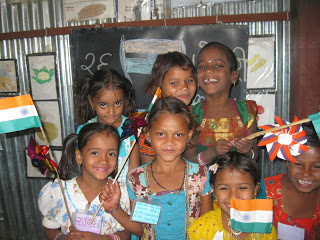 On Saturday, January 26th, Republic Day was celebrated in all construction site centers. Typically the celebrations start with morning procession, followed by prayers, flag hoisting, national anthem and exhibition of projects by children. Variety of different activities are planned in each center. Visitors and volunteers are also present in many centers to participate in the celebrations. The event is concluded by distributing sweets to all children.
